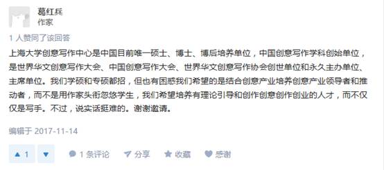上海大学葛红兵教授在知乎上介绍上海大学创意写作中心